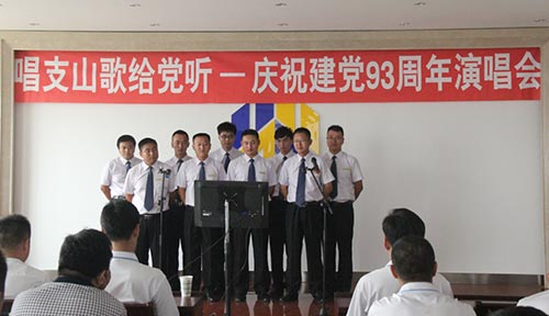 随着基础公司党支部的一曲《亚洲雄风》,演唱会正式拉开帷幕,一首首耳熟能详、脍炙人口的歌曲飘荡在整个会场。嘹亮的歌声,唤起了中华儿女的自豪和向往;优美的旋律,奏响了中华民族的伟大复兴。机关党支部参演成员齐声高唱《没有共产党就没有新中国》,将演唱会推向了高潮。