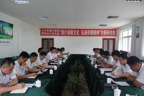 为了弘扬劳模精神、劳动精神,发挥先模人物的引领示范作用,激励广大干部职工以先模人物为榜样,立足本职、勤勉敬业、创新创效,为促进企业转型升级、创新发展,加快建成区域强院再立新功,5月30日至6月1日,院工会组织先模人物代表在山东省勘察设计教育培训中心举办了“践行诚善文化 弘扬劳模精神”专题研讨班。参加此次研讨班的有院2013、2014年度的突出贡献奖和优秀管理奖获得者、优秀项目经理、优秀新人及各公司推荐的先模人物代表,共计23人。院工会主席张方贵主持专题研讨会。