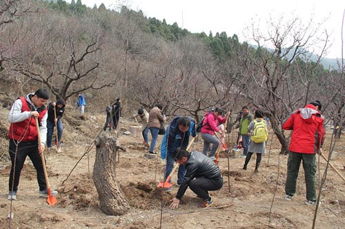 在植树过程中,大家积极参与、明确分工、相互配合,植树活动有序进行,场面气氛活跃。一个个树坑的挖成,一棵棵树苗的栽下,象征着一份份绿色的希望;每一滴汗水的流下,每一铲泥土的填充,代表着每一个人的责任与关爱。植树活动结束后,所有参加植树人员还分组进行了户外拓展和团队野炊活动,在增强团队协作意识的同时,也体会到了田园绿色生活的乐趣。