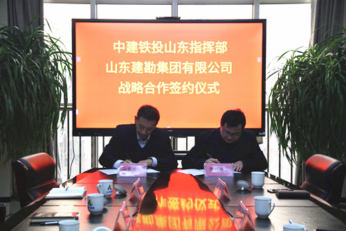 随后,集团公司总经理苏玉玺与中建铁路投资建设集团有限公司山东指挥部指挥长杨东祥共同签署了《战略合作协议》。