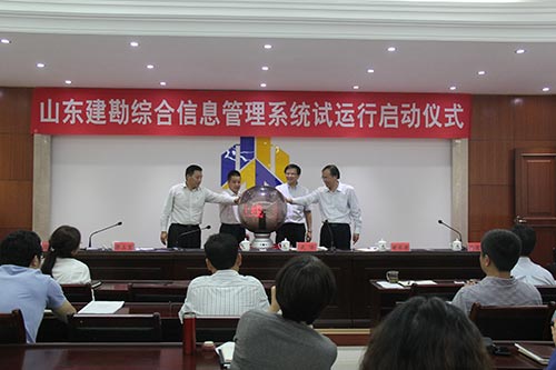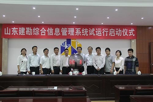 9月25日下午,我院举行综合信息管理系统试运行启动仪式,上勘院党委书记武浩、副总裁黄永进、信息中心经理易爱华,我院院长付宪章、常务副院长苏玉玺、工会主席张方贵、综合办主任徐宝军、信息中心副主任吕林翠出席综合信息管理系统试运行启动仪式,院机关全体人员、公司班子成员、项目经理和项目技术负责人参加了启动仪式。